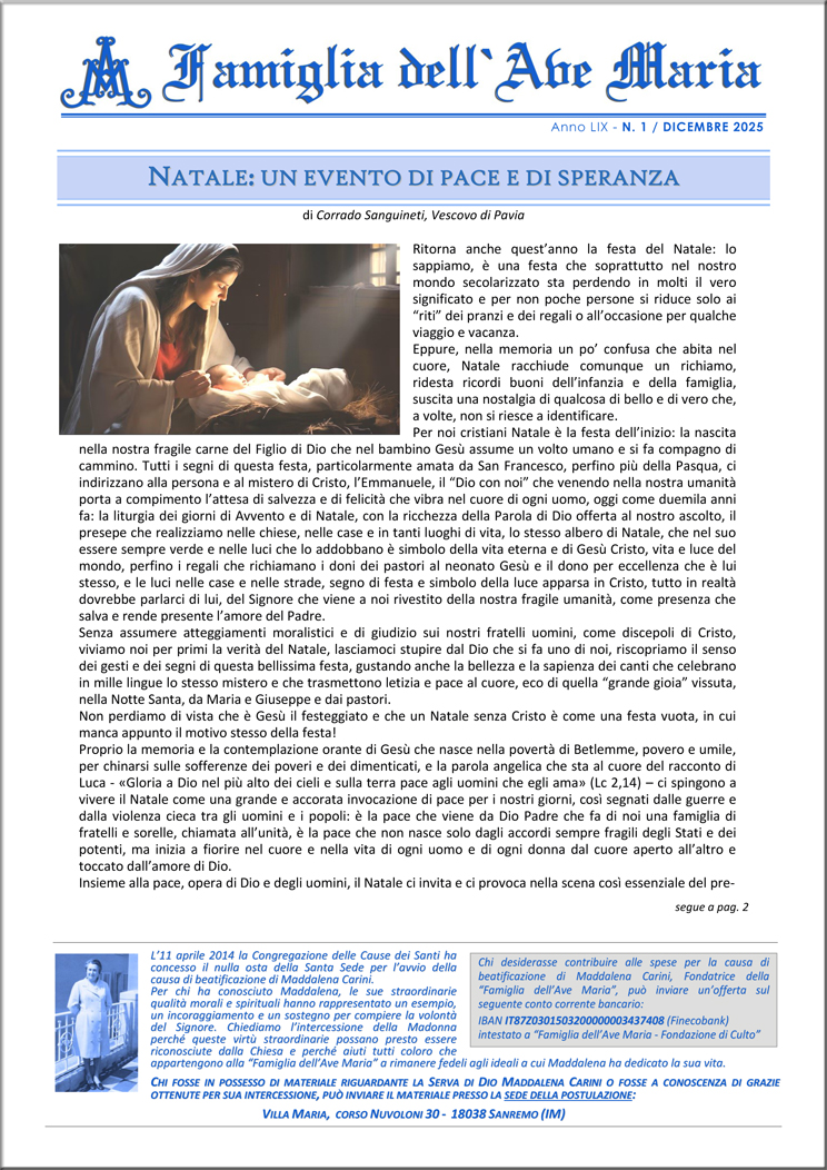 Famiglia dell’Ave Maria - Corso Nuvoloni 30 - 18038 Sanremo - Tel 0184.531422 - Fax 0184.531425 web development by Blue Ocarina® s.r.l.
